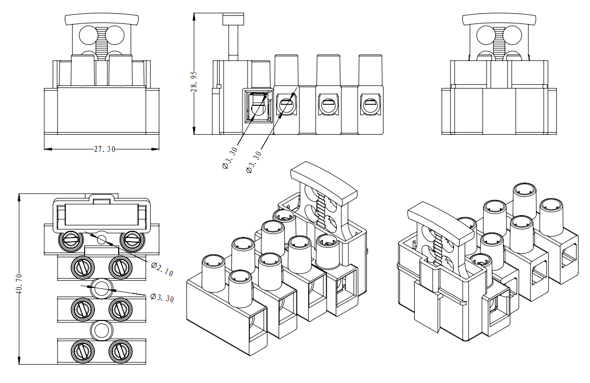 | 連接容量 | 實(shí)芯線 | 2.5-4.0mm2 | 0.5-4.0mm2 |