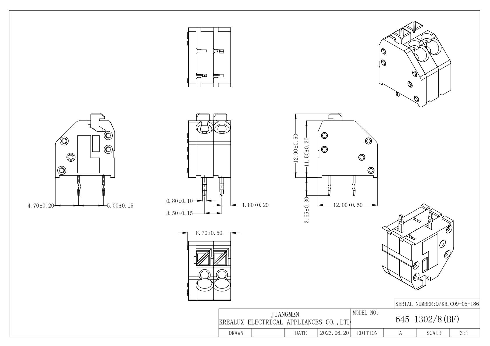 | 絕緣材料 | 材質(zhì) | 聚酰胺66 |