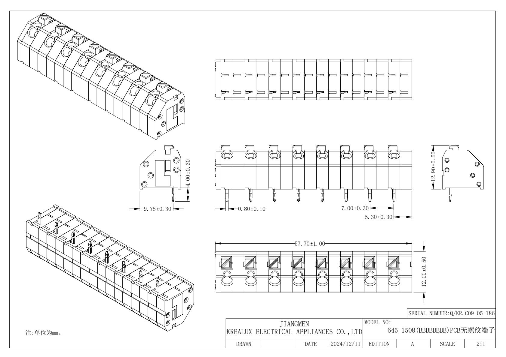 | 絕緣材料 | 材質(zhì) | 聚酰胺66 |